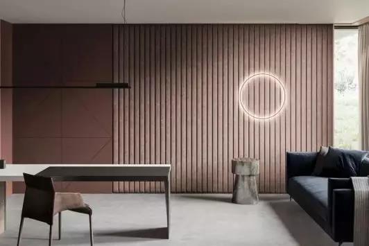 当暖木棕与深紫色、浅粉红色融合在一起的时候,呈现出一种深邃及安静的惬意,给身心带来暖暖的舒心,体现出治愈系的家的美好意境。