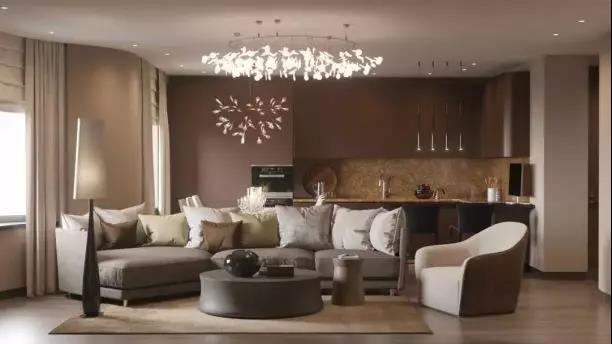 该案例的色彩搭配,以淡雅轻松的暖木棕与粉灰色营造一个自然、轻松的家居环境,建立与自然的连接,享受自然色彩带来的舒适与安心。具有强大的包容性及延展性,同时又体现了自由与深沉的一个空间平衡。