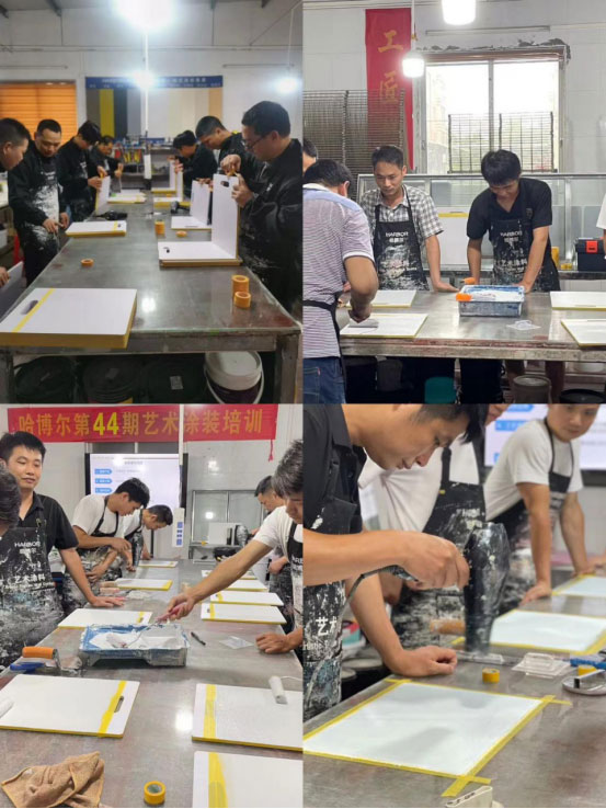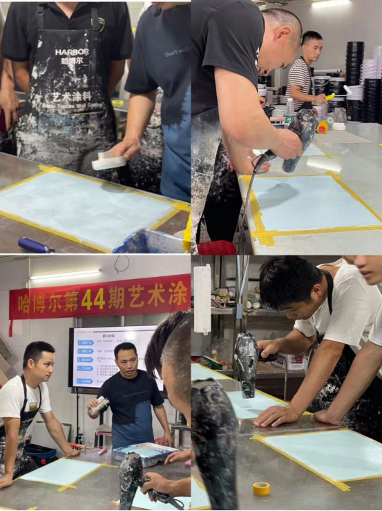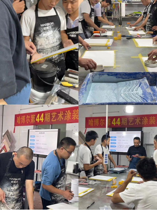 经过三天的实战培训,学员们对哈博尔艺术涂料主推产品、制作工艺有了更深的了解,并运用所学掌握的技术,制作出成熟的艺术效果。