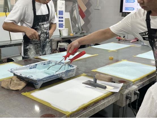 第一天,哈博尔技术指导罗经理围绕哈博尔艺术涂料品牌理念、产品性能、色彩工艺、场景应用等方面进行了全面、详尽的介绍。