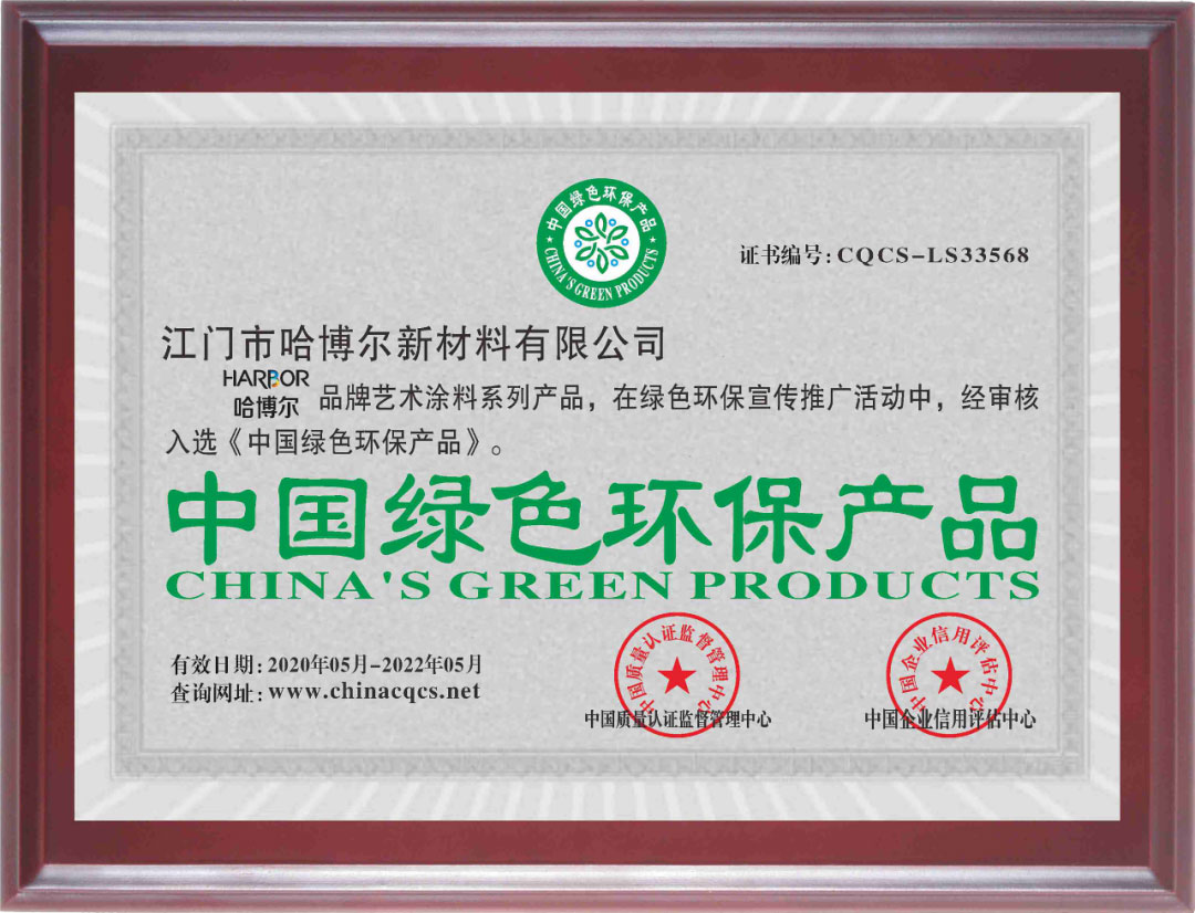 哈博尔艺术涂料专注于追求品质,卓越的产品品质和绝佳的环保性能,使其先后获得了全球范围内最严格的法国A+认证、中国环保绿色产品认证。法国A+认证
