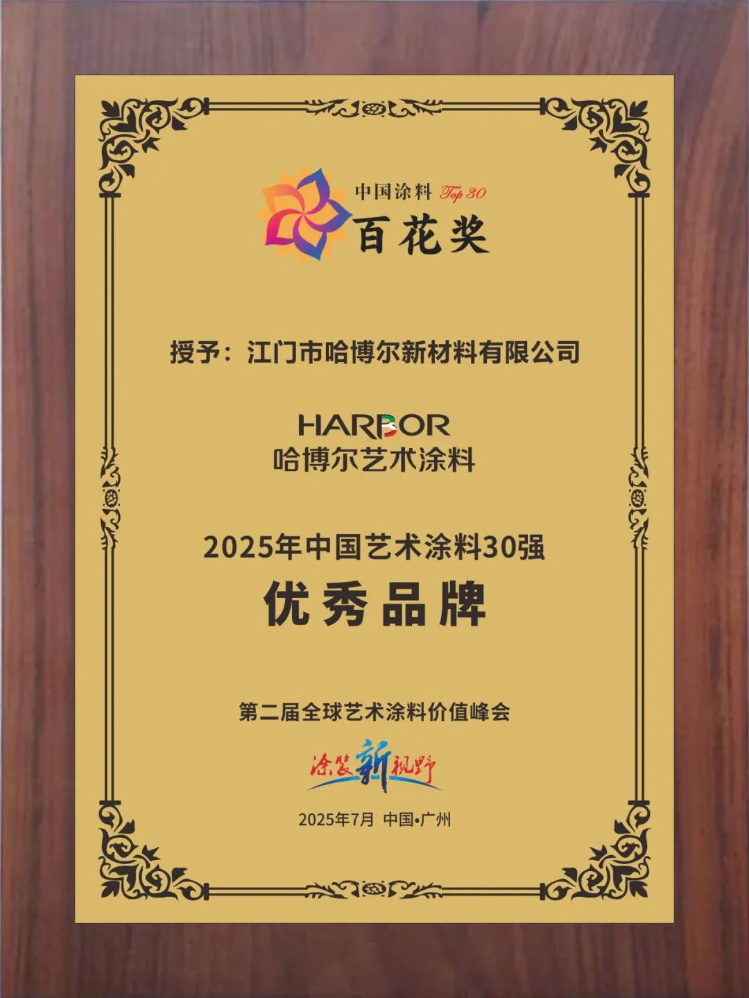 喜报:哈博尔荣获2025年中国艺术涂料优秀品牌30强