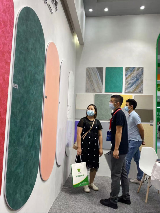 山不在高,有仙则名;水不在深,有龙则灵。在广州建博会,国潮品牌哈博尔艺术涂料的展位面积不算太大但位置上佳,展厅墙面上一排排展示样板艺术排列,几张接待圆桌上,是哈博尔团队正在与观展客户洽谈合作。