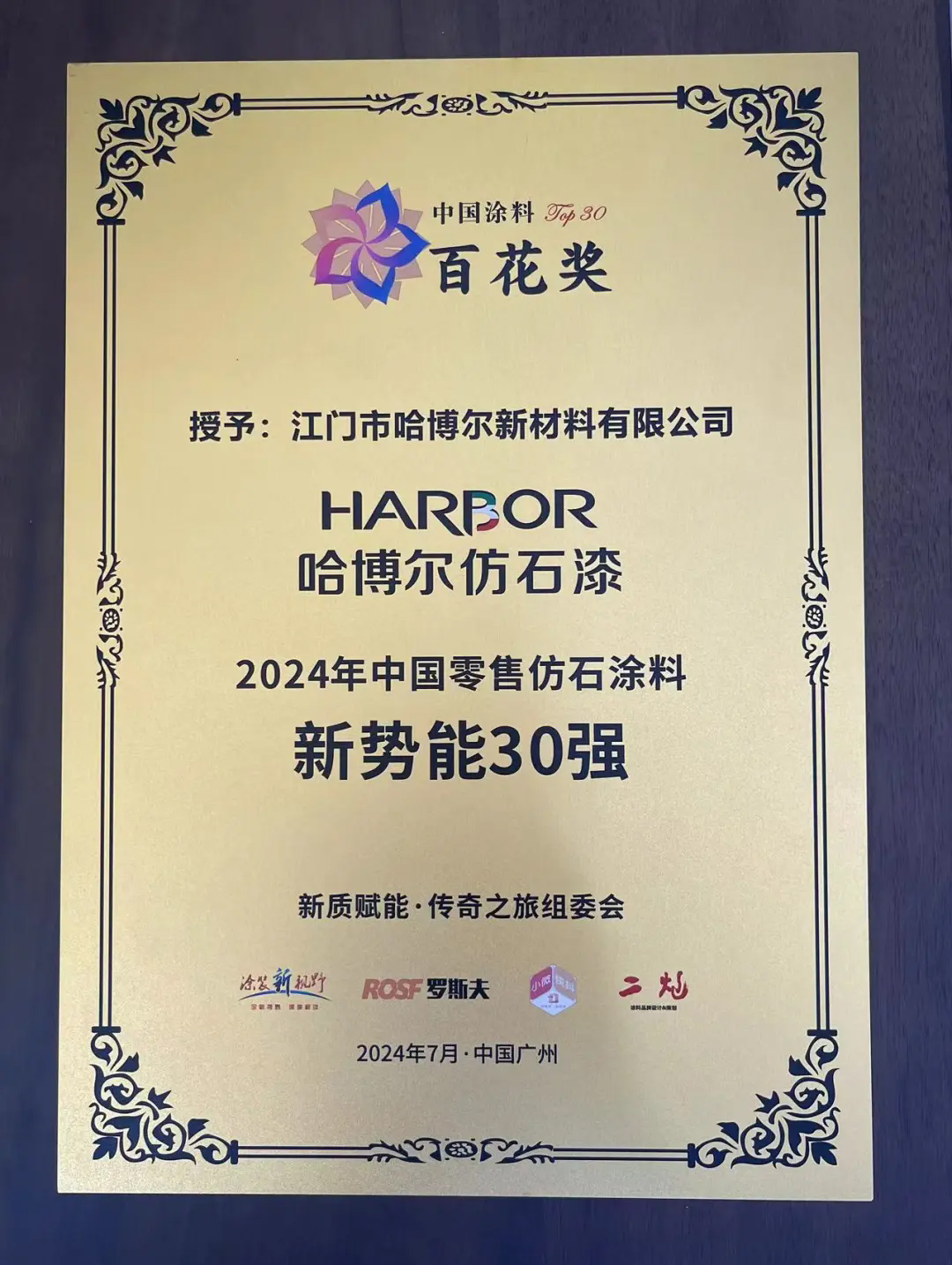 喜报|哈博尔荣获2024中国零售仿石涂料 新势能30强