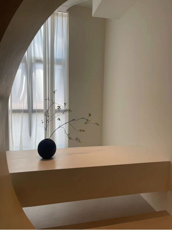 大面积需要两人同步施工,做阴角位时需要先做好一面墙干透后再做另一面墙,半干时不可以反复多次滚涂,否则纹理会比较粗糙。