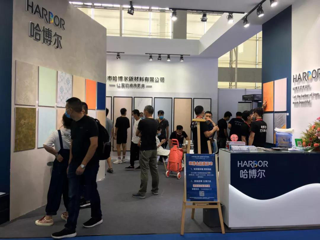 哈博尔艺术涂料以现代时尚,轻奢简约的品牌形象亮相建博会,现场人气满满,好评如潮。精心设计的展位,引来众多粉民打卡,“让爱的港湾更美,品牌理念不错,意向合作我们确定一下”来自湖南的签约客户章总如是说。