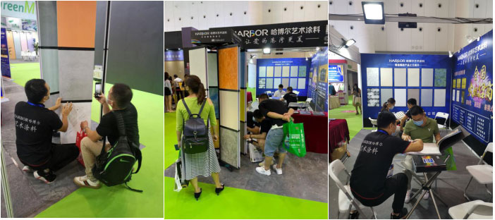 哈博尔艺术涂料在新时代、新征程中参加第二十届成都建博会。展会现场人气满满,新模式、新产品上市深受参会客户好评。